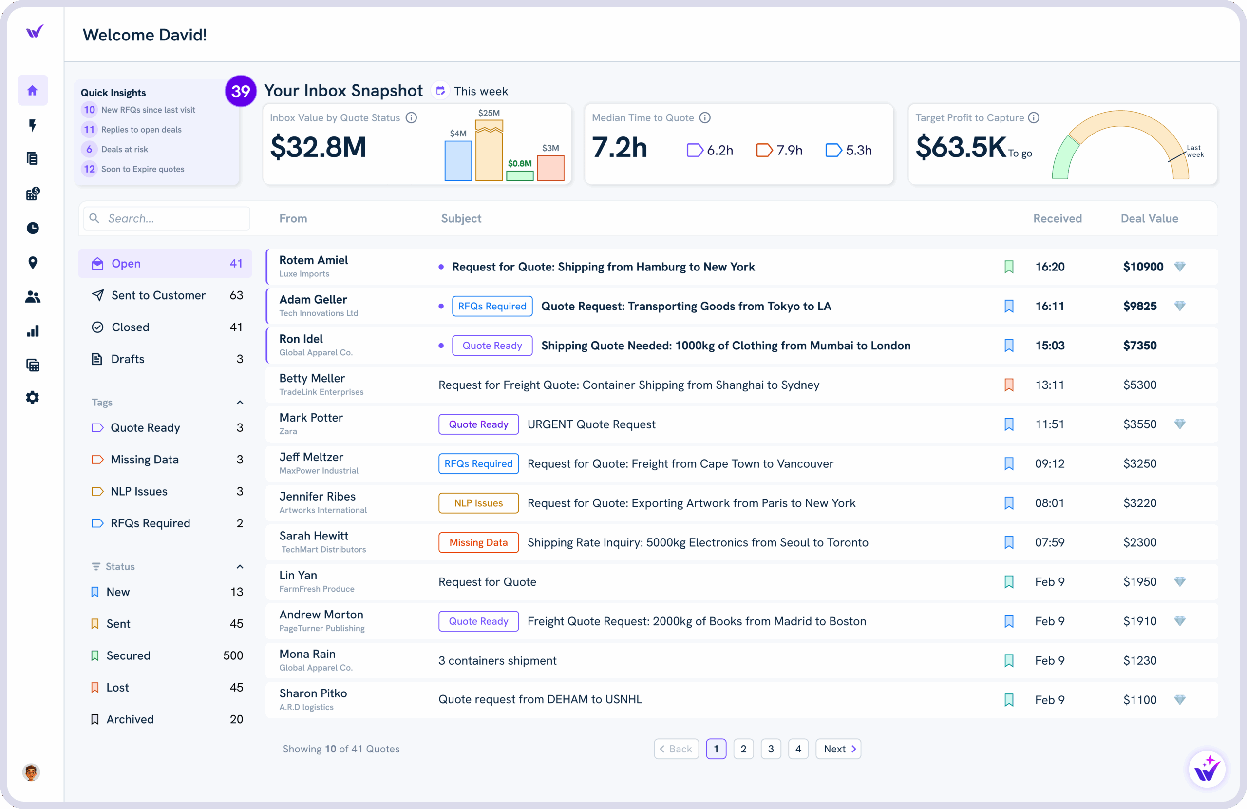 “Wisor has streamlined our quoting. The Email-to-Quote function, FCL APIs, and rate management have given us faster responses, more accurate pricing, and more options for customers.”