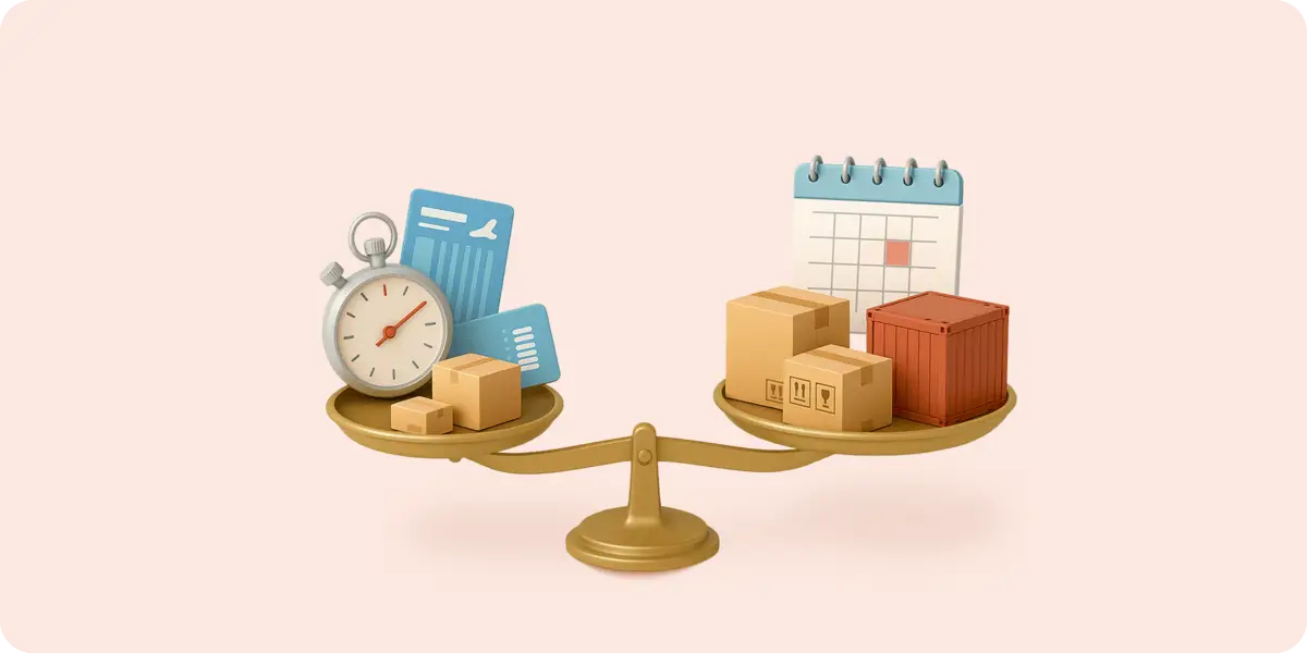 Understanding the trade-offs between the two modes helps teams make smarter, case-by-case decisions. To help you decide between them, here’s a side-by-side comparison of how air and sea freight differ across key logistics criteria: